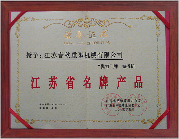 江蘇省名牌產(chǎn)品證書