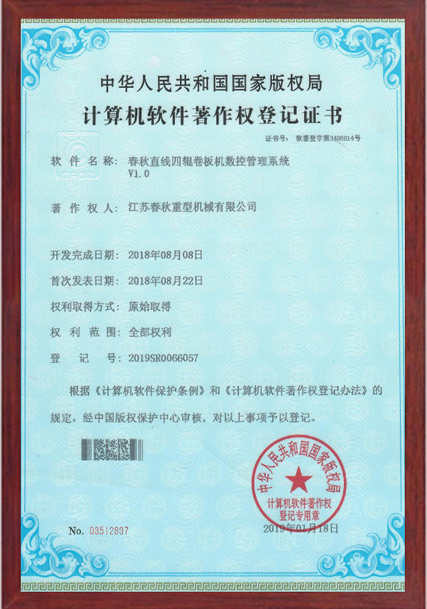 直線四輥卷板機數控管理系統(tǒng)軟件著作權
